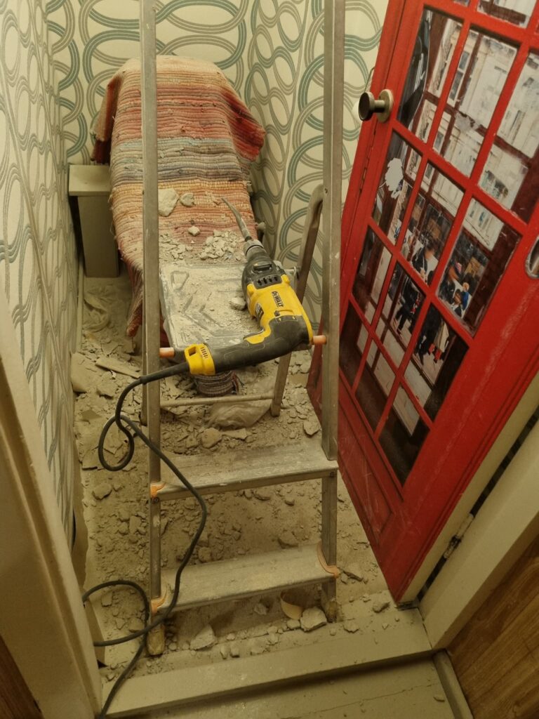 Seina avamine ja torude paigaldamine tekitab suures koguses ehitustolmu ja jäätmeid. Soovitame kindlasti ise WC-pott ja põrand turvaliselt kinni katta. Avamistööde ja kinni ladumise järel põrandad tolmuimejaga puhastatakse. Lõppviimistlus tehakse igas korteris korraga kui kõik vee, kanali, ventilatsiooni ja küttetorud on paigaldatud. Jooksev info 0-korruse stenditel.